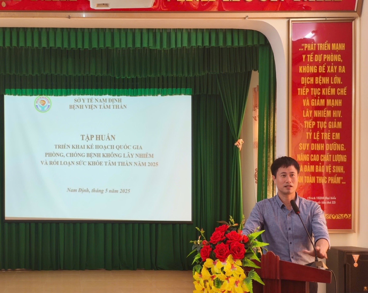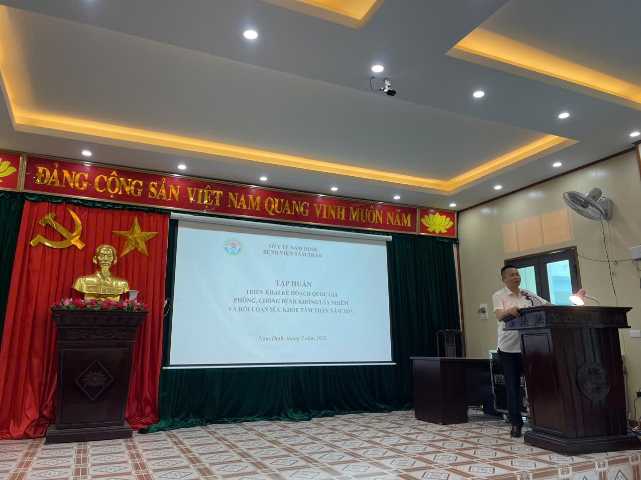 Nhằm nâng cao trình độ chuyên môn, nghiệp vụ cho cán bộ y tế tuyến huyện, xã, phường, thị trấn để đáp ứng được yêu cầu công tác phát hiện, theo dõi, quản lý và điều trị bệnh nhân tâm thần phân liệt, động kinh, các rối loạn tâm thần khác tại cộng đồng. Trong tháng 4, tháng 5 năm 2025, Bệnh viện Tâm thần Nam Định tổ chức 9 lớp tập huấn Chuyên khoa Tâm thần cho cán bộ chuyên trách tâm thần tuyến huyện, xã thuộc 9 Trung tâm Y tế huyện, thành phố. Tham dự lớp tập huấn có BSCKI. Phạm Duy Kiều – Quyền giám đốc Bệnh viện, Lãnh đạo của 9 trung tâm y tế huyện, thành phố cùng các cán bộ chuyên trách tâm thần tuyến huyện, xã trên toàn tỉnh.
