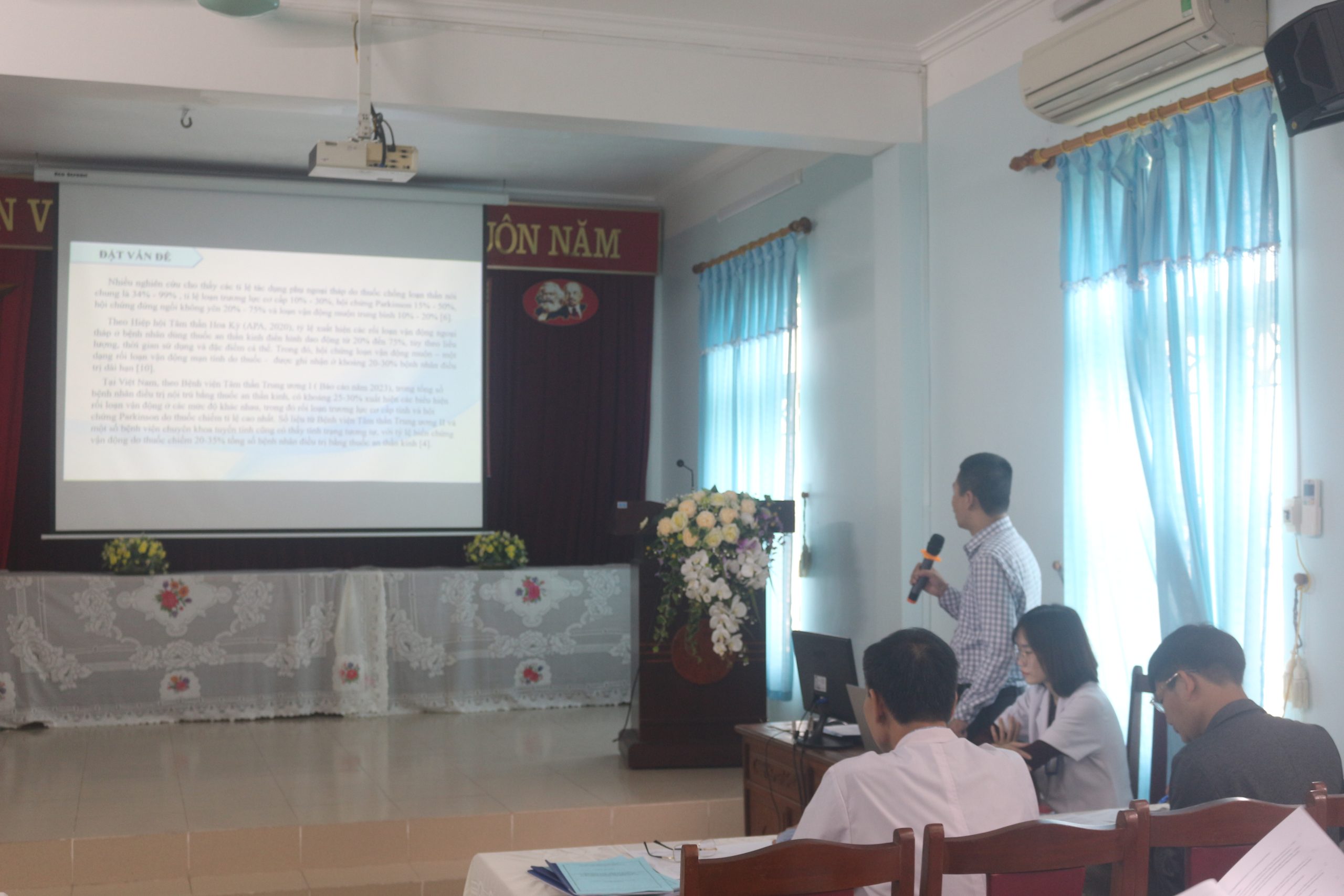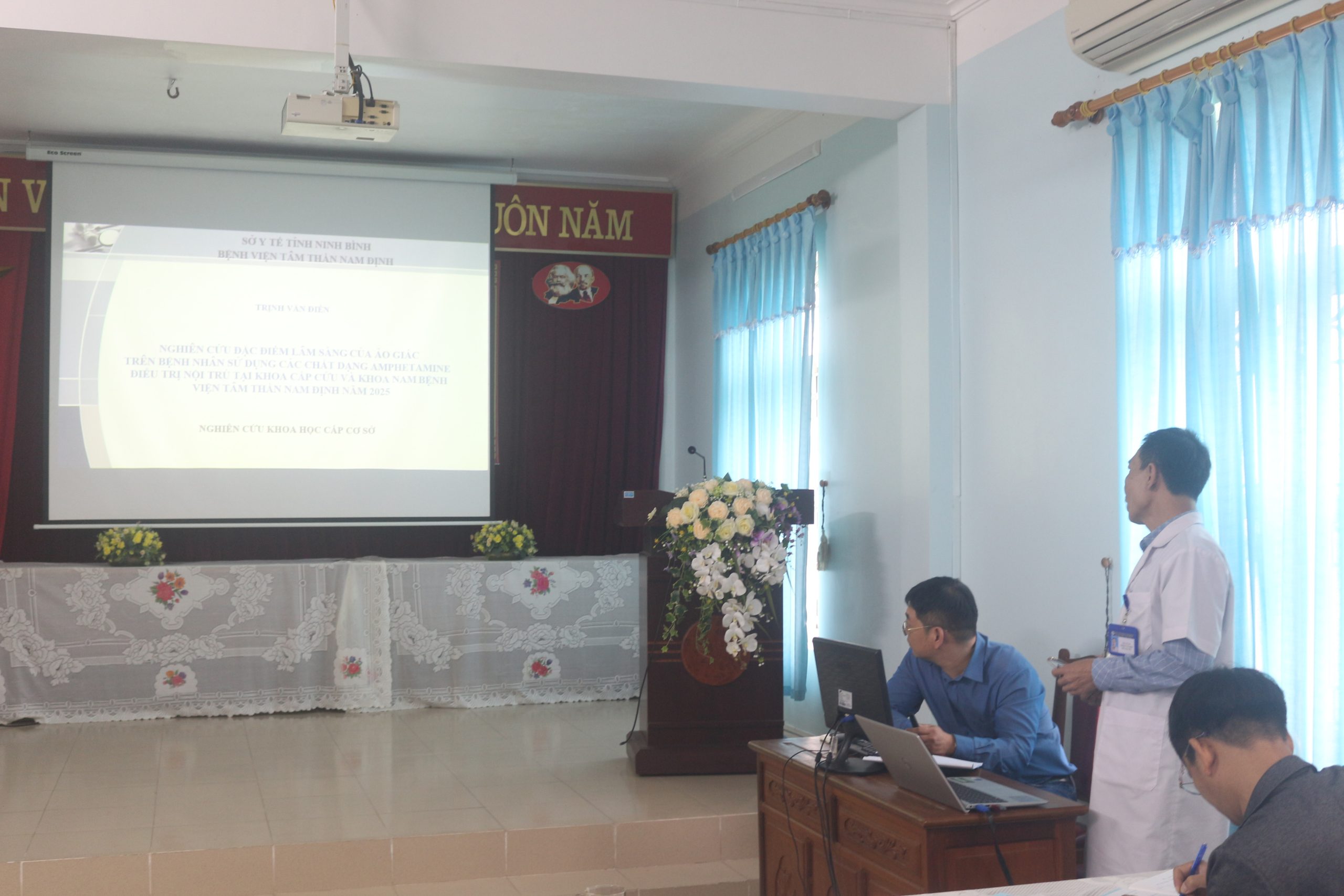 Chiều ngày 17/11/2025, tại Hội trường tầng 3 Bệnh viện Tâm thần Nam Định đã tổ chức nghiệm thu đề tài khoa học cấp cơ sở năm 2025, dưới sự chủ trì của đồng chí Phạm Duy Kiều – Giám đốc Bệnh viện cùng sự tham gia của các thành viên trong Hội đồng đánh giá, nghiệm thu đề tài, sáng kiến khoa học cấp cơ sở của Bệnh viện.