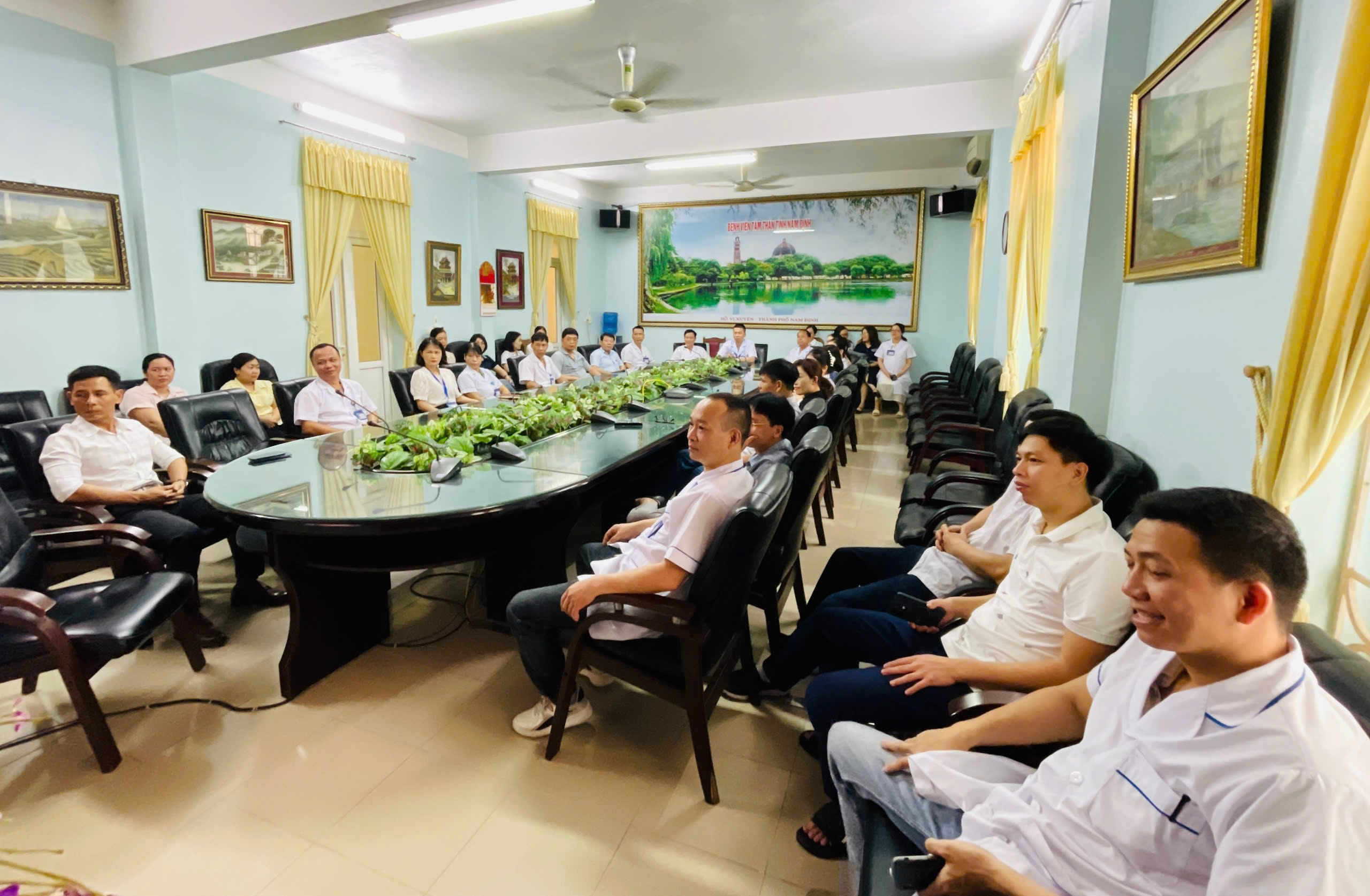 Quang cảnh hội nghị tại điểm cầu bệnh viện Tâm thần Nam Định.