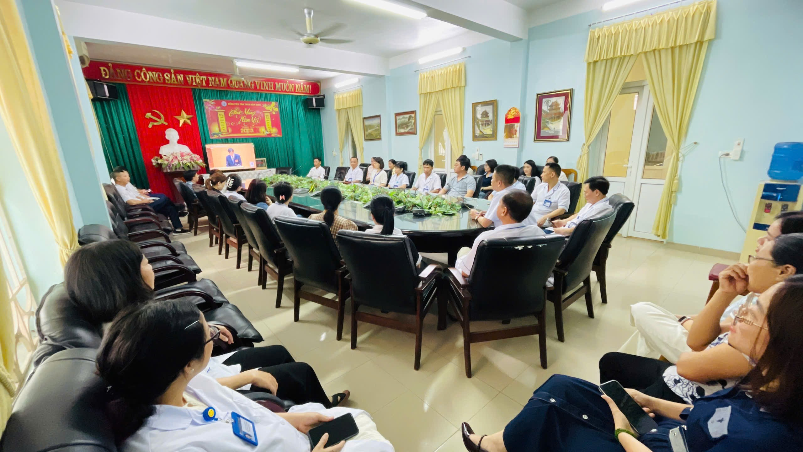 Các đồng chí dự tại điểm cầu bệnh viện Tâm thần Nam Định.