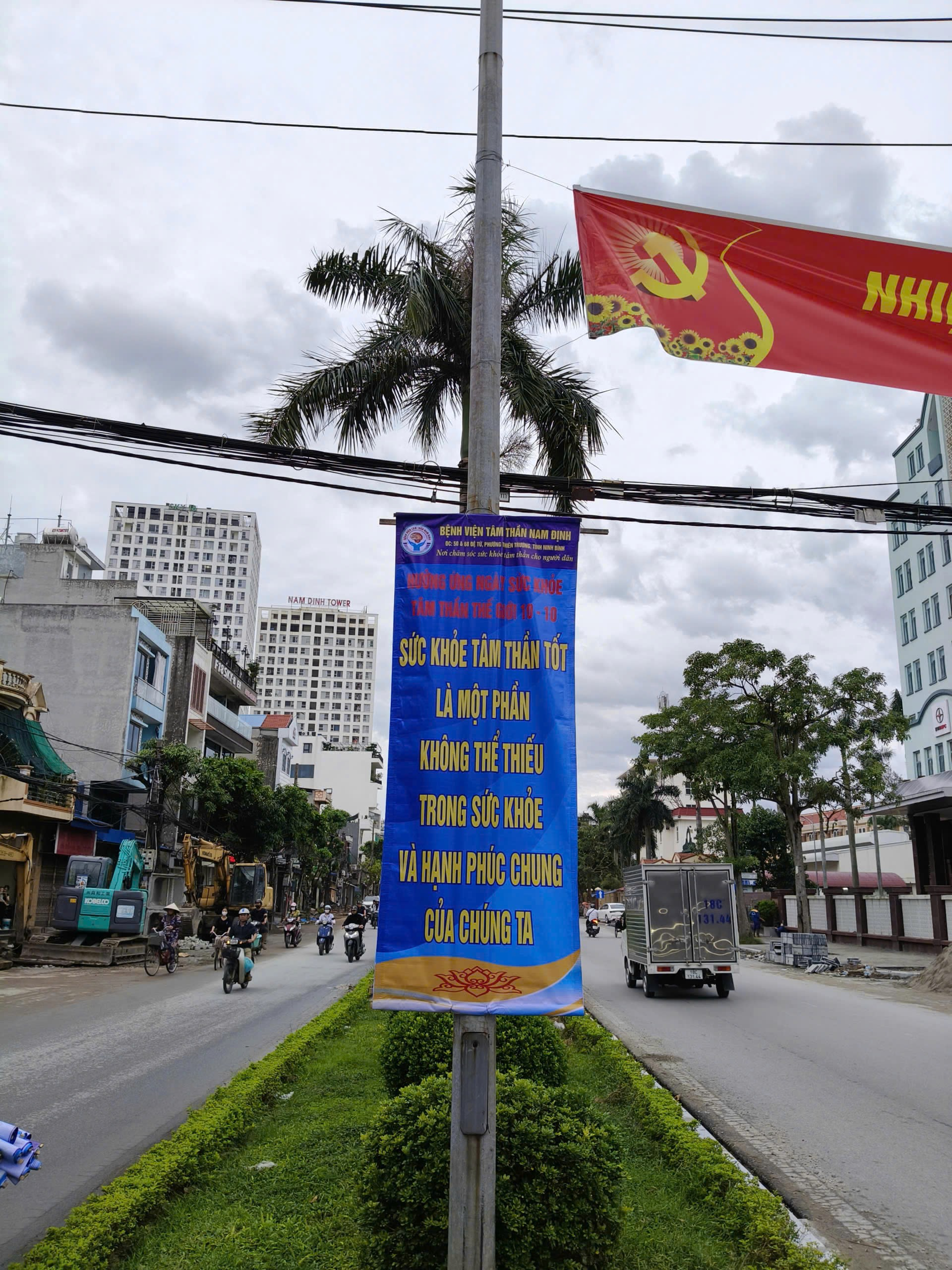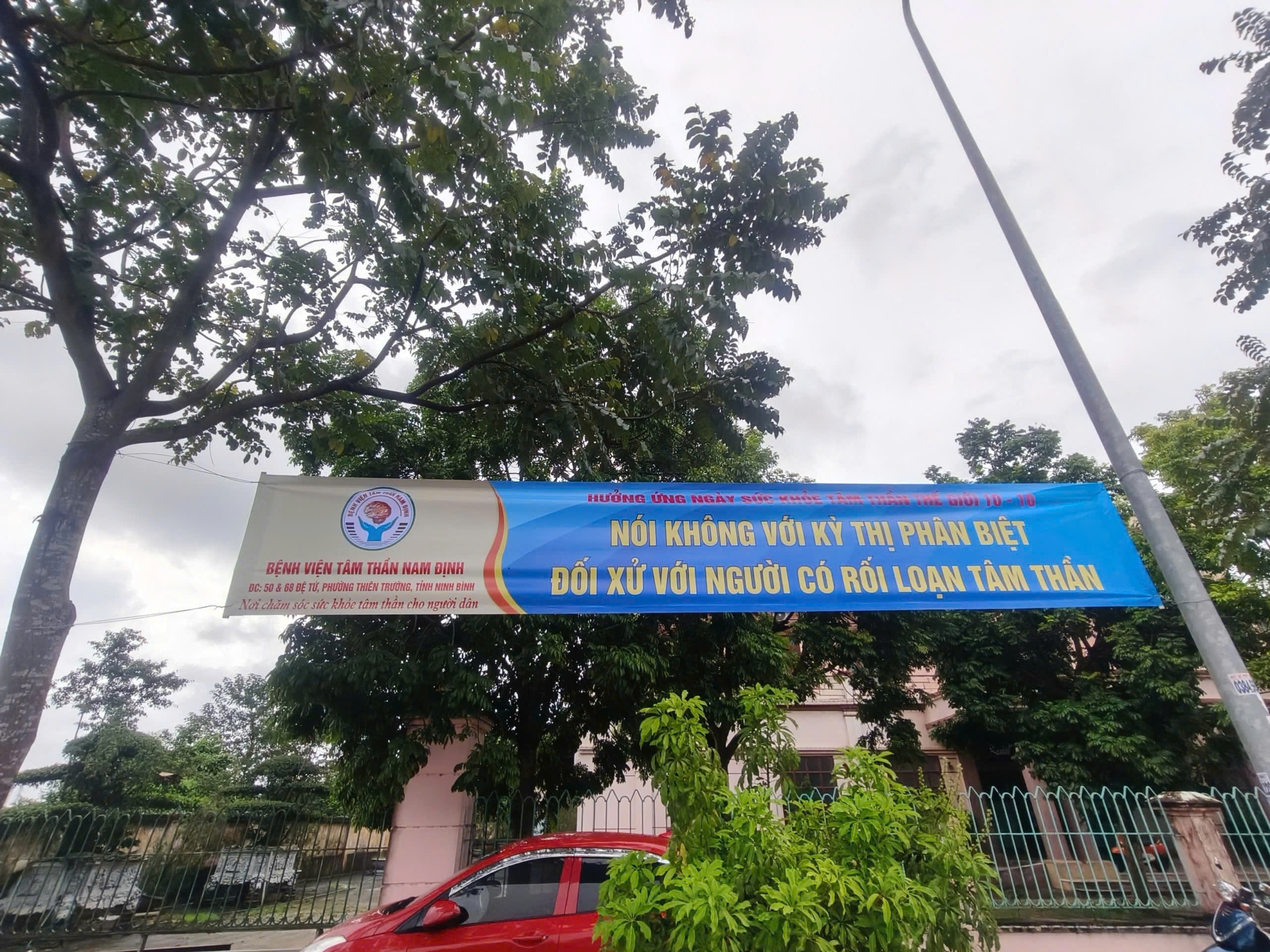 Hưởng ứng Ngày Sức khỏe Tâm thần Thế giới 10/10/2025 Bệnh viện Tâm thần Nam Định tích cực triển khai các hoạt động truyền thông như: treo băng rôn, khẩu hiệu tuyên truyền; lồng ghép nội dung chăm sóc sức khỏe tâm thần trong các hoạt động truyền thông khác… nhằm nâng cao nhận thức, giúp cộng đồng quan tâm nhiều hơn đến sức khỏe tinh thần.